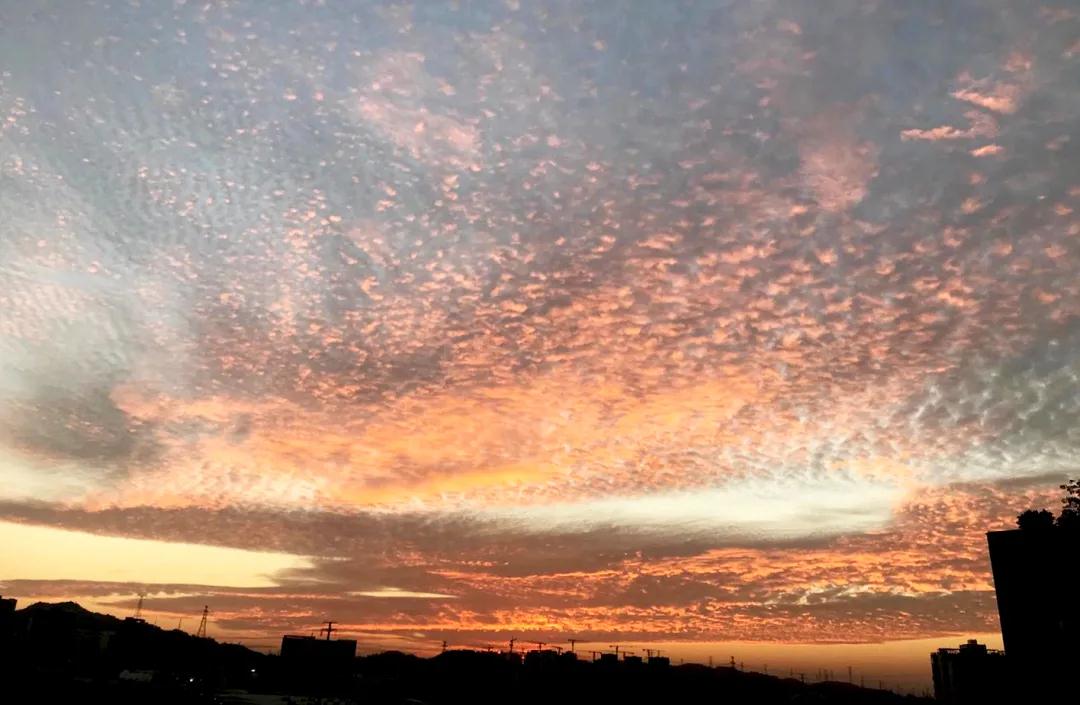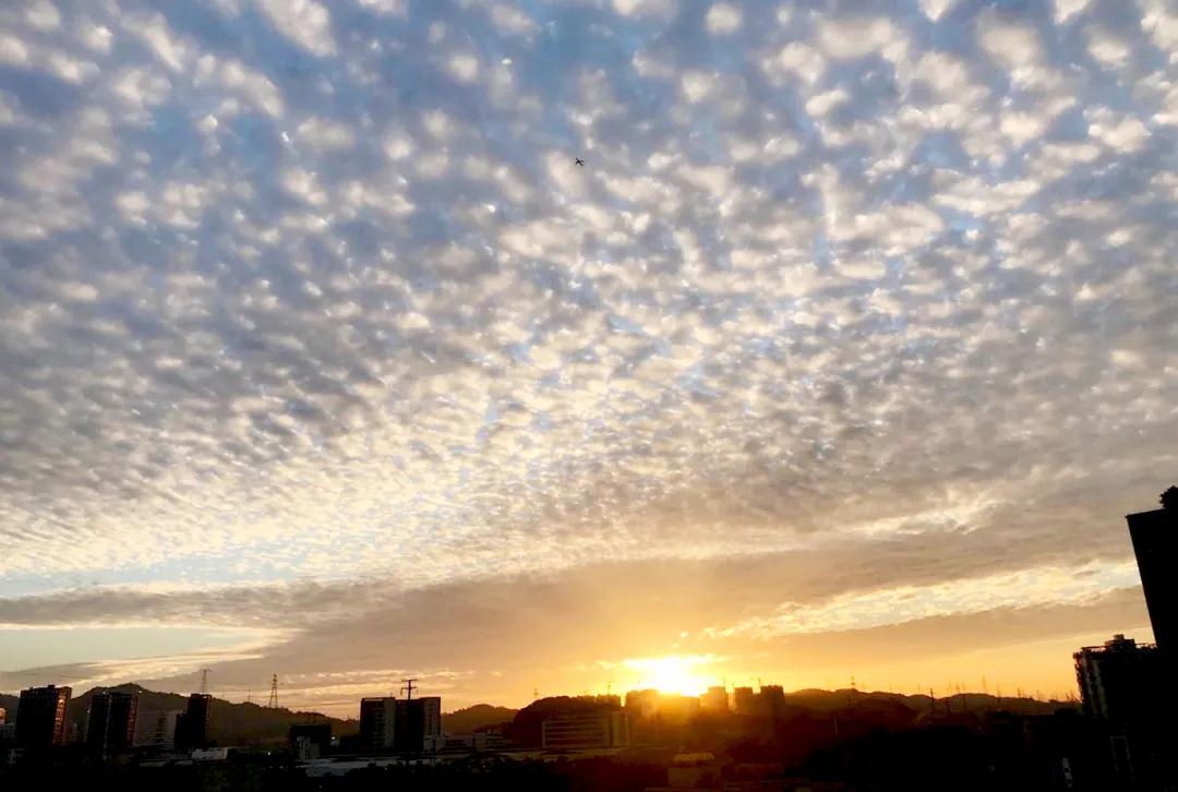 讓人紛紛拿起手機記錄下這旭日煙云的天空。