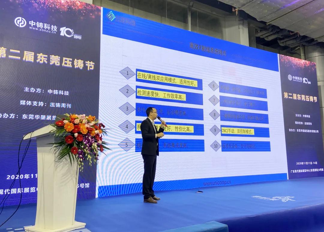 日聯科技展位參展觀眾絡繹不絕,展臺旁“壓鑄新技術”研討會也座無虛席。日聯科技代表田經理上臺演講,與大家分享經驗與技術,共同探討壓鑄行業發展新方向。