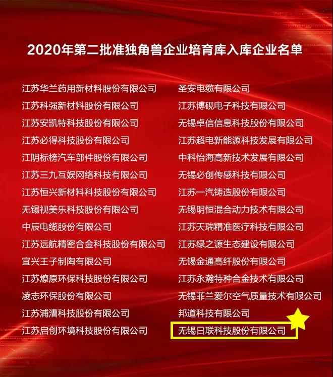 無錫高新區新增入庫“雛鷹企業”120家、“瞪羚企業”33家、“準獨角獸”企業3家,日聯科技榮譽在列“準獨角獸”企業。