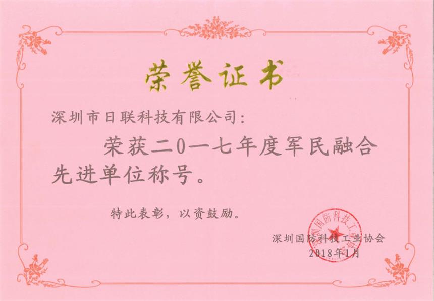 2017年度軍民融合先進(jìn)單位”榮譽(yù)稱號(hào)。