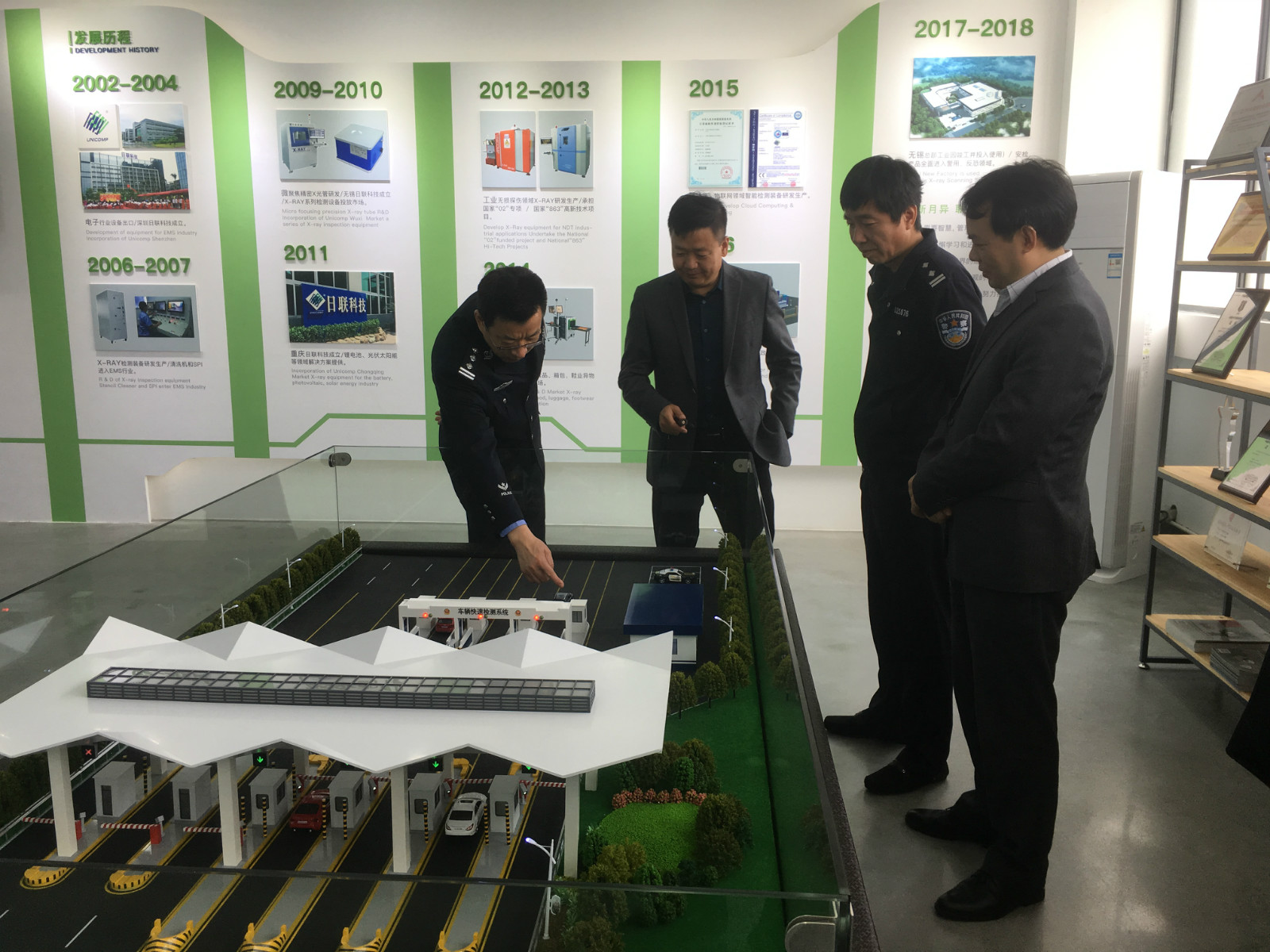 近兩年,日聯科技大力開拓智能車檢系統,包括一站式警用檢查站、監獄車檢系統、綠色通道車檢系統、工業物流園區車檢系統、大廈地庫車檢系統及集裝箱檢測系統等,覆蓋了公安、司法監獄、交通、海關、口岸及物流園區的車輛安全檢查范圍,填補了行業空白。