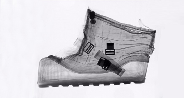 一張高腰套靴的X射線圖片顯示了鞋帶調(diào)整的位置