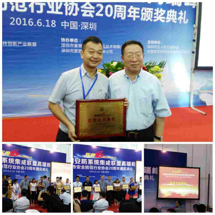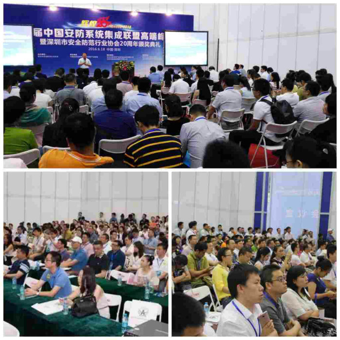 2016年6月18日,由深圳市安全防范行業(yè)協(xié)會(huì)主辦,中國安防系統(tǒng)集成科技創(chuàng)新產(chǎn)業(yè)聯(lián)盟承辦的“2016首屆安防系統(tǒng)集成聯(lián)盟高端峰會(huì)暨深圳市安全防范行業(yè)協(xié)會(huì)輝煌20周年頒獎(jiǎng)典禮”在深圳會(huì)展中心7號(hào)館會(huì)議室成功舉辦,現(xiàn)場包含海康威視、神州數(shù)碼、日聯(lián)科技在內(nèi)的300余位會(huì)員企業(yè)代表參加了會(huì)議。