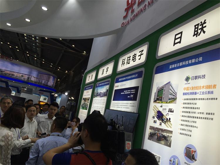 日聯科技深圳公司2015-2017連續三年,從眾多報名企業中脫穎而出被光明新區評選上參加高交會,參展企業包括日聯科技在內的等20家高新技術企業。展會期間,新區黨工委書記王宏彬率隊到光明新區展區參觀,詳細了解參展企業情況,詢問企業產品、發展方向、運營模式等多方面問題,表示對新區產業發展現狀充滿期待。鼓勵新區各企業充分利用各種扶持政策,加快創新發展步伐,在新區不斷繁榮壯大。