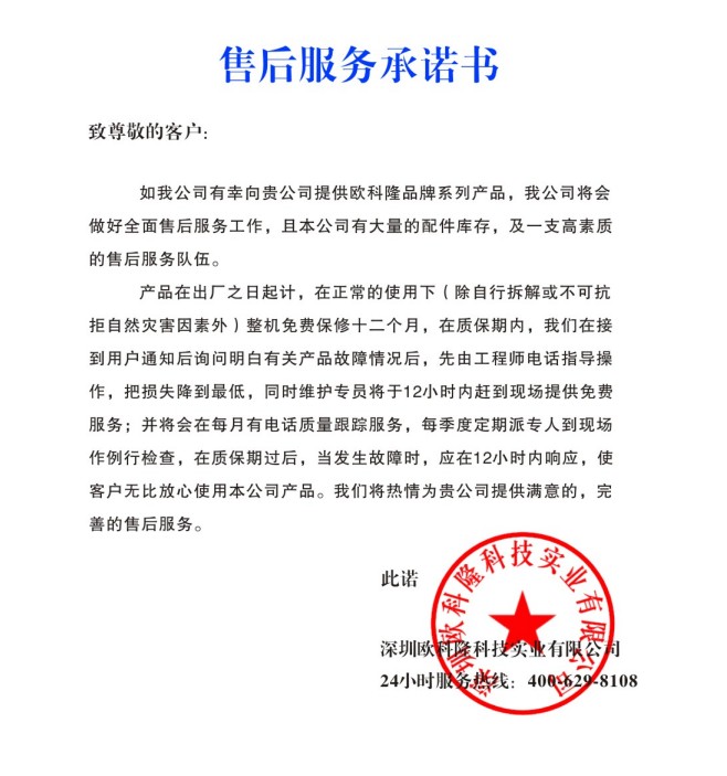 質(zhì)保期外售后服務成本價提供設備零部件;成本價提供維修保養(yǎng)服務。