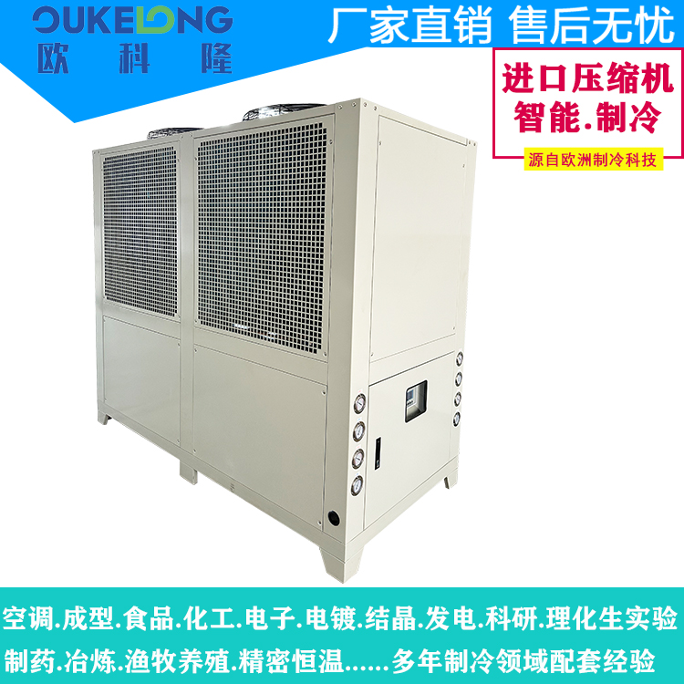 歐科隆制冷科技40HP風(fēng)冷式冷水機(jī)型號(hào):OKL-40AF,是一款大功率工業(yè)制冷設(shè)備,專(zhuān)為重型制造和連續(xù)生產(chǎn)需求設(shè)計(jì)。該機(jī)型采用創(chuàng)新風(fēng)冷技術(shù),實(shí)現(xiàn)40匹(約120kW)強(qiáng)勁制冷量,突破傳統(tǒng)水冷系統(tǒng)限制,顯著降低安裝維護(hù)成本。