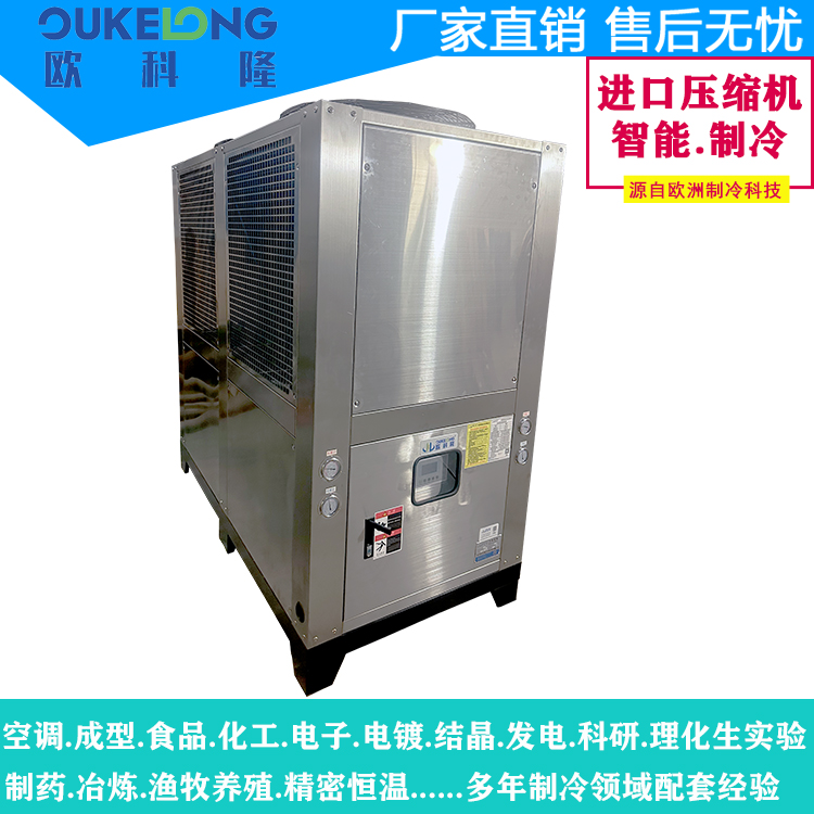歐科隆25HP風(fēng)冷式304不銹鋼冷水機(jī)是一款工業(yè)級(jí)高防腐制冷設(shè)備,專用于食品醫(yī)藥、化工電鍍等腐蝕性環(huán)境。整機(jī)核心部件采用304不銹鋼材質(zhì),兼具大冷量與卓越耐腐蝕性能。