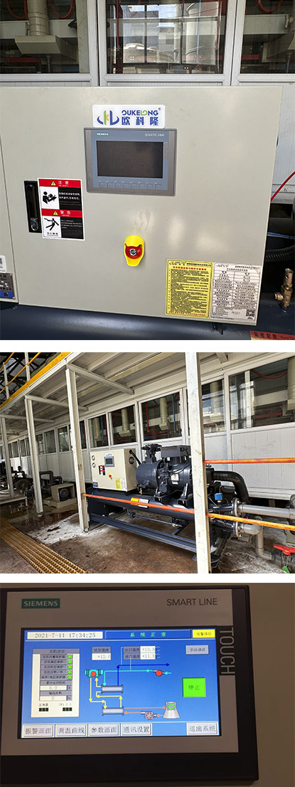 本案位于湖北十堰國企二汽某五金件廠大型電鍍生產(chǎn)線配套的水冷螺桿式冷水機(jī),二次購買案例。
