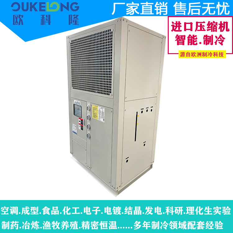 歐科隆自主研發(fā)設(shè)計(jì)實(shí)驗(yàn)室高低溫沖擊冷水機(jī)專為極端溫度測(cè)試設(shè)計(jì),具有快速溫變、精準(zhǔn)控溫、高可靠性等特點(diǎn)。其溫區(qū)覆蓋-70°C至+150°C,升降溫速率可達(dá)5~30°C/min,滿足芯片、電池、材料等溫度沖擊測(cè)試需求(如JESD22、MIL-STD標(biāo)準(zhǔn))。采用雙循環(huán)制冷系統(tǒng)和高效換熱技術(shù),確保溫度穩(wěn)定性(±0.5°C)。
