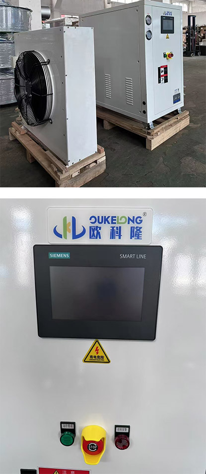本案例位于華中科技大學(xué)物理實(shí)驗(yàn)室使用高階定制冷水機(jī),特點(diǎn):控制器為西門子程序控制、流量溫度壓力PLC變頻可調(diào)、內(nèi)外機(jī)分體設(shè)計(jì),內(nèi)機(jī)在實(shí)驗(yàn)設(shè)備旁邊,外機(jī)在外墻上方便通風(fēng)散熱。